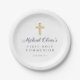 Personalisierte Navy Blue Script Religious Cross First Communion Paper Teller. Boy Foto First Navy Blue Communion Welcome Foam Board. Teil der Religious Cross Navy Blue Boy First Communion Collection Suite mit passender Einladung, Schreibwaren und erstem Communion Party Zubehör.
