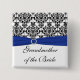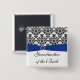 Blaue Schwarz-weiße Damast-Großmutter der Braut Button