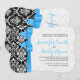 Blaue schwarze und weiße Damasken Hochzeit Einladung