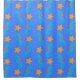 Ein Muster von Seepferden schwimmen und Seesterne mit Textur auf das Bild angewendet. Der Duschvorhang ist dekoriert und in Blau-Orange- und Rosatönen gehalten. Dekorative für Kinderzimmer, Badezimmer in Strandhäusern und anderen Orten, die mit Meereslebewesen und Ozeanen verwandt sind.
