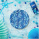 Papier-Teller in stilisierten, von Algen inspiriert Fronten in eisblauen Farbtönen, die sich anmutig mit einem reichhaltigen Kobalt-Hintergrund verflechten, für ein dynamisches, maritimes Design