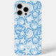 Passen Sie diese blaue Shell-Muster iPhone 15 Pro Max Hülle mit Ihrem Namen in einer trendigen modernen Großbuchstaben-Schrift in Blau auf Weiß an. Es ist so modern und strandig!