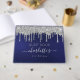 Ein Gästebuch für eine weibliche und glamouröse 21. Geburtstagsparty (oder jedes Alter). Ein stilvoller marineblauer Hintergrund mit Imitaten silberne Glitzer Tropfen, Farbe tropfend aussehen. Die blaue Farbe ist ungleichmäßig. Geben Sie Ihren Namen und Alter 21. Der Name ist weiß geschrieben mit einem modernen handgeschriebenen Stil Skript mit Swashes. Personalisieren Sie Ihren Text und fügen Sie ihn in den Buchrücken ein. Um die Swashes behalten, löschen Sie nur den Beispielnamen, verlass die Leerzeichen oder Emoji's vor und nach dem Namen.