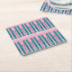 Blaue Skier auf Schnee & rosa Hintergrund Rechteckiger Pappuntersetzer