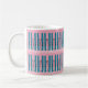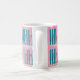 Blaue Skis auf Schnee mit rosa Tasse. Kaffeetasse
