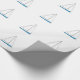 Ein wiederholendes Muster blauer sloop Segelboote mit weißen Segeln verzieren dieses themenorientierte Packpapier des Segelns. Sloop Segelboote haben einen Mast und zwei Segel, genannt "Kranbalken" und "Großsegel".