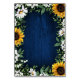 Navy Blue Sunflower Rustic Wedding Insert Cards - mit marineblau blauem Holzboden dekoriert mit Aquarellfarben, Sonnenblumen, Grünpflanzen, Babyatmen und Lilie des Tales.