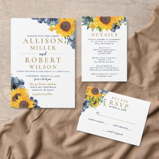 Watercolor Navy Blue Sunflower Rustic Wedding Designt von Maria G