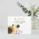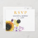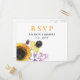 Watercolor Navy Blauer Sonnenblume Rustikale Hochzeit rsvp Postkarten. Aquarellfarben blaue goldene Sonnenblumen rustikales Hochzeitdesign mit Bouquet aus Sonnenblumen und Navy Blumen, schöne Kombination aus Marine und Gelb für eine rustikale Chic Hochzeit oder eine Country Hochzeit.