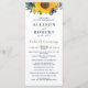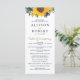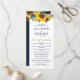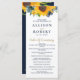 Watercolor Navy Blauer Sonnenblumen Rustikale Hochzeitsprogramme. Aquarellfarben blaue goldene Sonnenblumen rustikales Hochzeitdesign mit Bouquet aus Sonnenblumen und Navy Blumen, schöne Kombination aus Marine und Gelb für eine rustikale Chic Hochzeit oder eine Country Hochzeit.