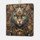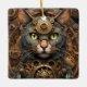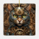 Blaue Steampunkkatze KI Kunstschmuck Keramikornament