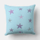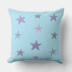 Blaue Sterne auf türkisfarbenem Kissen. Blaue Sterne mit einigen violetten Farbtönen.