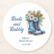Stiefel & Bubbly Brautparty-Thema - Blaue Country-Stiefel und sprudelnde westliche Cowgirl-Hochzeitsdusche-Rundpapierserviette.