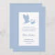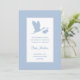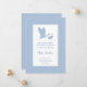 Einfache, aber attraktive blau-weiße Geburtsankündigung mit einer Silhouette eines fliegenden Storches. Auf der Rückseite ist Platz für ein digitales Bild Ihres neuen Babys.