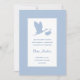 Einfache, aber attraktive blau-weiße Geburtsankündigung mit einer Silhouette eines fliegenden Storches.