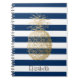 Dieses Bild zeigt eine Ananas mit goldenen Streifen in marineblau. Personalisieren Sie den Namen für sich selbst oder als niedliche Geschenkidee.