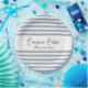 Entworfen, um die Farbe unserer Kinderzimmer Kollektion zu entsprechen. Das Design umfasst einfache, aber moderne blau-weiße Streifen, einen Header, der "Bonjour Bebe" heißt, hallo Baby, und eine Textzeile für Personalisierung.