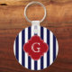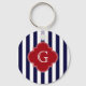 Blaue Streifen Cranberry Quatrefolienmonogramm Schlüsselanhänger