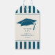 Machen Sie Ihre Partygeschenke zur Abschlussfeier unverwechselbar mit unseren stilvollen und anpassbaren Geschenkanhängern! Diese stilvollen Anhänger zeigen eine elegante Abschlussmütze und elegante blaue Streifen auf einem warmen cremefarbenen Hintergrund. Fügen Sie einen persönlichen Touch hinzu, indem Sie den Namen des Absolventen und das Datum einfügen, um es wirklich besonders zu machen.