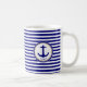 Dieser personalisierte Schlamm weist ein nautisches Design mit einem blauen Anker in einem runden Rahmen auf marineblau gestreiften Hintergrund auf. Personalisieren Sie ihn mit einem Namen in einer passenden Farbe.