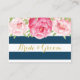 Hochzeitstischplatskarten in marineblau-weiß Streifen mit rosa Aquarellfarben Vintage Blume, auch in vielen passenden Hochzeitsartikeln erhältlich.