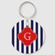 Blaue Streifen, rotes Quatrefolienmonogramm Schlüsselanhänger