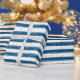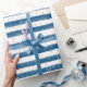 Blaue Streifen und Gold Glitzer Boy Party Geschenkpapier