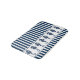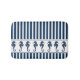 Dieses Design am Meer umfasst ein weißes Band von marineblauen Meerpferden über ein marinebrandiges und blassgraues Streifen Muster. Es ist eine schöne Wahl für die Sommerdekoration, einen Strand-Zuhause, ein Segelschiff oder ein Badezimmer mit Wassersport.
