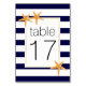 Im Mittelpunkt dieser modernen Tischnummer stehen Seesterne und marineblau-weiße Streifen. Ideal für Ihren Sommerstrand Hochzeitstisch!