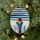BLAUE STRIPEN & RED RUBY KERAMIKORNAMENT