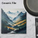 Diese bezaubernde Keramik-Kachel präsentiert eine atemberaubende Bergwelt, meisterlich in sanften Blau- und Bräunungstönen dargestellt, die ein Gefühl der Gelassenheit und Ehrfurcht wecken. Im Herzen der Komposition schlängelt sich ein kristallklarer Bach sanft den Berg hinunter, sein Wasser reflektiert die azurblaue Farbe des Himmels und schafft eine harmonische Farbenmischung, die Ruhe ausstrahlt. Die Berge, die in verschiedenen Bräunungsfarben dargestellt sind, erheben sich majestätisch vor der Kulisse, ihre Gipfel berühren den Himmel, was sowohl auf ihre Grandeur als auch auf die zeitlose Schönheit der Natur hindeutet.