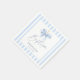 Feiern Sie den besonderen Tag Ihres kleinen Jungen oder Mädchens mit diesem modernen Baby Blue Bogen und Stripe Papier Servietten. Dieses individuell gestaltbare Design ist perfekt für Taufe geeignet. Freuen Sie sich auf weiche Aquarelldetails und formales Textlayout. Personalisieren Sie Ihre Daten mit dem Namen und dem Datum Ihres Kindes. Perfekt für: Taufen