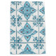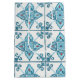 Die geometrisch vielseitig gestalteten Motive sind in marokkanisch-mediterran-blauen Fliesen auf weißem Hintergrund gehalten.