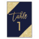 Goldtypografie auf dem individuell anpassbaren Glitzer in blauen Marineblättern und Imitate goldene geometrische Streifen schicke Tischnummer Hochzeit , ideal für elegante, Strand Hochzeit,