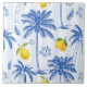 Blaue Toile-Palmen-Limonen-Muster Keramikfliese. Bringen Sie einen Hauch von tropischem Küstencharme in Ihre Heimdekoration mit diesem Design, das einen hellblauen gestreiften Hintergrund mit skizzierten blauen Palmen und lebendigen gelben Limonen zeigt. Fügen Sie Ihrem Wohnraum mit diesem einzigartigen, originellen Design eine ausgeklügelte Eleganz hinzu. Verwenden Sie einen Fliesenuntersetzer oder erstellen Sie eine wirklich einzigartige Fliesenrückwand mit mehreren Fliesen.
