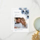 Blaue transparente Blumen auf einem benutzerdefinierten Foto mit einem linksbündigen Dankestext.