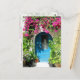 Blaue Tür gerahmt mit schönen Bougainvillea Postkarte