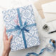 Blaue u. weiße Damast-Geschenk-Verpackung Geschenkpapier