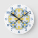 Blaue und gelbe hübsche portugiesische Fliesen Runde Wanduhr