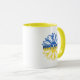 Blaue und gelbe Sonnenblume mit Inschrift Ukraine Tasse