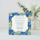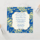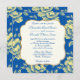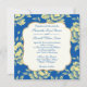 Eine Hochzeitseinladung mit einem blauen und gelben Toildesign mit Blume aus Pony und einer goldenen Imitat-Grenze.