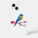 Blaue und gelbe Vögel mit rosa Blüten zeichnend iPhone Hülle