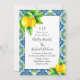 Mittelmeerblauer und gelber Zitrusfrüchte Zitrusfrüchte Einladung zur Hochzeit. Eine bezaubernde Hochzeitseinladung, inspiriert von der lebendigen mediterranen Ästhetik, mit einem reizvollen blau-gelben Fliesenmuster mit Zitruslemonen. Diese Einladung im italienischen Stil spiegelt das Wesen von La Dolce Vita wider und zeigt aufwändige Kacheln und wunderschön illustrierte Zitronenzweige, die in den oberen und unteren links Ecken anmutig positioniert sind. Der Text der Einladung ist elegant in einem rechteckigen Rahmen dargestellt. Ideal für Paare, die ihren besonderen Tag mit einer Touch sonniger Eleganz feiern möchten!