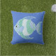 Mit diesem royal blauen, melodischen Kissen, das mit einem lustigen, blauen, grünen und weißen, gemusterten Fisch aufwartet, verleihen Sie Ihrem Freien ein wenig Sommerfarbe. Anpassen und Text hinzufügen, um dies zu einem eigenen zu machen.
