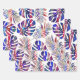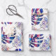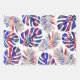 Blaue und lila gemusterte tropische Blätter bürsten Pinselstriche, die Papier umwickeln. Es zeigt gemusterte tropische Blätter mit Pinselstrichen in Blau und lila und Konfetti. Sie können es anpassen und Ihre Bilder oder Grafiken hinzufügen.