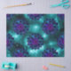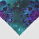 Faszinierende und wunderschöne blaue und lila Mandalase über einem hellgrünen Sternenhimmel. Ideal für decoupage Kunstwerke, Papierhandwerke oder Geschenkverpackungen.