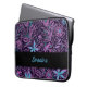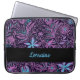 Blaue und lila Neon-Blume auf schwarzem Hintergrund, fügen Sie Ihren Namen.