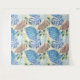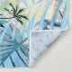 Nahtlos abstraktes Muster. Blaue und lila tropische Blätter. Tropen, Abstraktion, Design, Stil, Interieur, Farn, Efeu, Burdock, Hawaii, Thailand, exotisch, hell, farbig, blau, beige, lila
