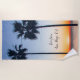 Blue & Orange Sunset Palm Trees Silhouette Strandtuch