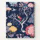 Ein schönes Notizbuch-Design, das ein gewagtes, farbenfroh gestaltetes Muster von Blume und Vögeln in rosa, gelb und weiß Set vor einem tiefmarineblauen Hintergrund aufweist. Ideal für Schule, Büro oder Zuhause.